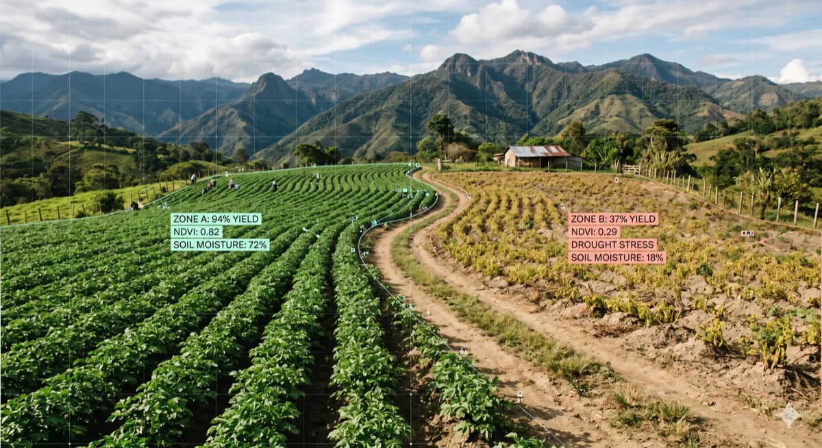 No necesariamente. AgroTech Colombia reconstruye el historial productivo de cualquier finca usando imágenes satelitales y datos climáticos históricos. No requiere instalar nada en el campo: con la ubicación del lote es suficiente para entregar análisis de los últimos años.